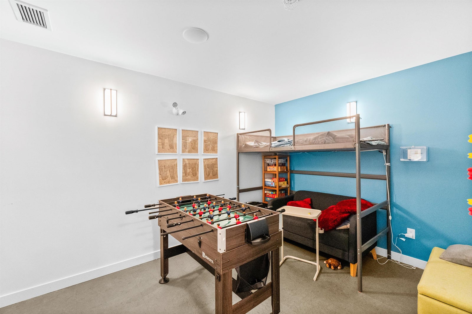Beautifully designed 4-bedroom + den, 3-bath townhome blending modern style with everyday function. The open-concept main floor features 9-ft ceilings, spacious living/dining areas, and a private patio. The kitchen is equipped with a double oven, island, stainless appliances, and ample storage. Two heat pumps provide year-round comfort. Upstairs offers 3 bedrooms and a large bath, while the top floor is a private primary suite with ensuite and walk-in closet. Backing onto Wagg Creek Park and steps to Lonsdale’s shops and cafes, Driftwood Village offers a rooftop garden, co-working space, playrooms, guest suite, workshop, bike storage, and communal kitchen. Includes parking, storage locker, and internet in strata fees.