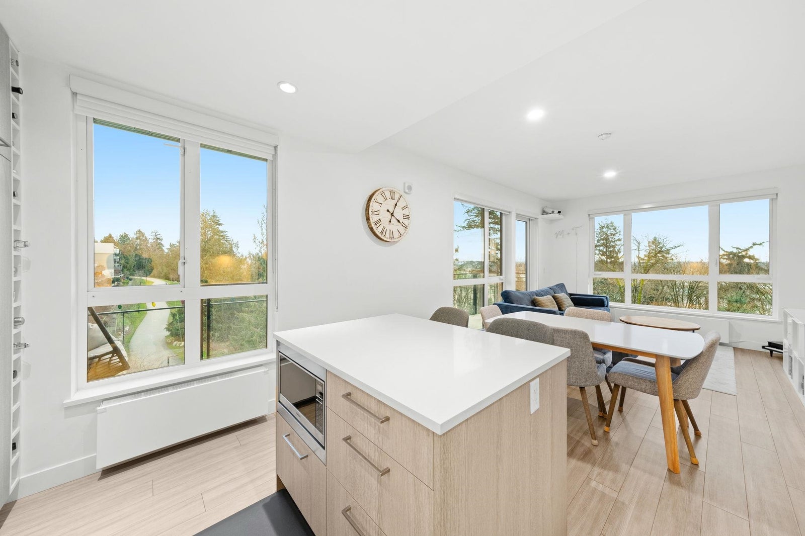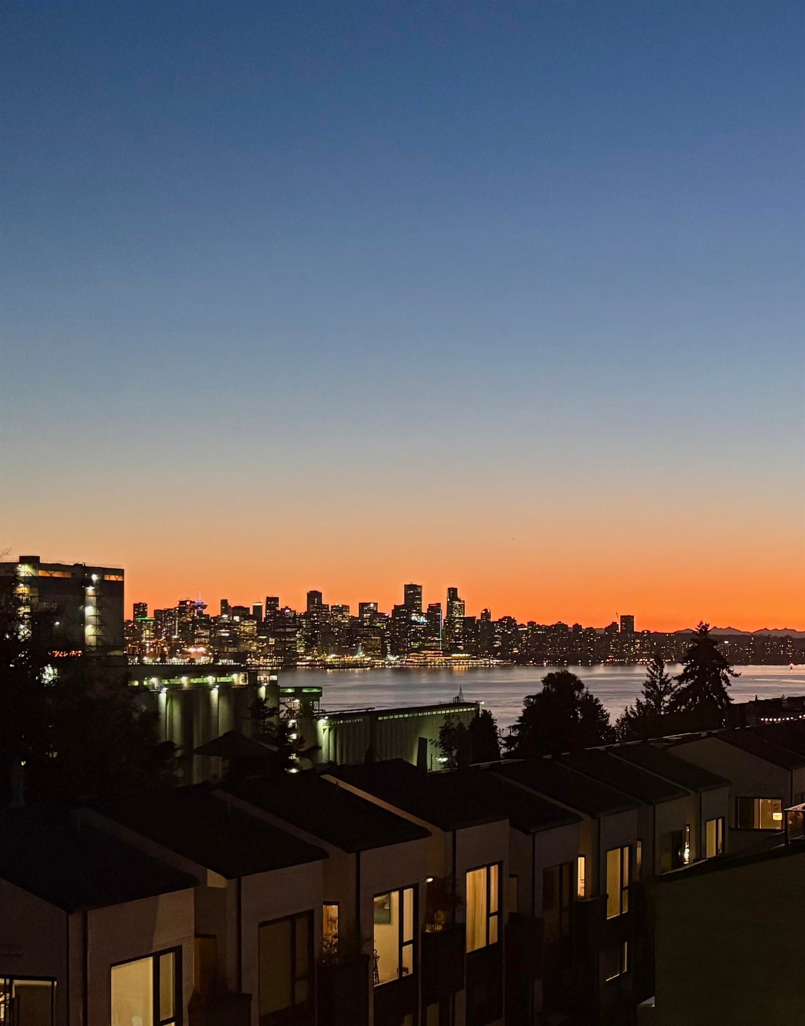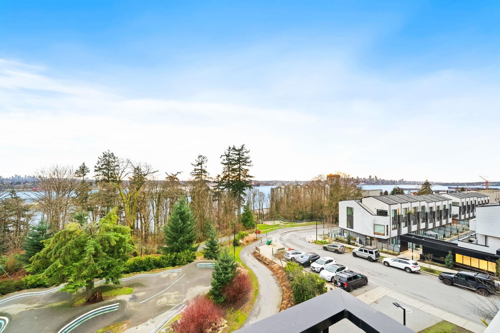 Rare & truly special. The only 3-bed + Flex CORNER condo with PANORAMIC ocean, city and park VIEWS on the market in Moodyville. This private, light-filled, south-facing home features floor-to-ceiling windows, open plan living that feels generous with no compromise on space or PRIVACY. A chefs kitchen w/gas cooktop, integrated appls, island & great hosting space. Enjoy the expansive balcony overlooking the Spirit Trail, city & ocean. Bonus -No one directly above! Trails, playgrounds & cafés at your doorstep; mins to Lower Lonsdale & Park & Tilford. Quality finishes, motorized blinds, hydronic cooling system, 2 parking, flex -insuite storage, pets ok, gym, guest suite, party room. Ideal for families, couples, downsizers seeking elevated condo living. Welcome home to Green On Queensbury.