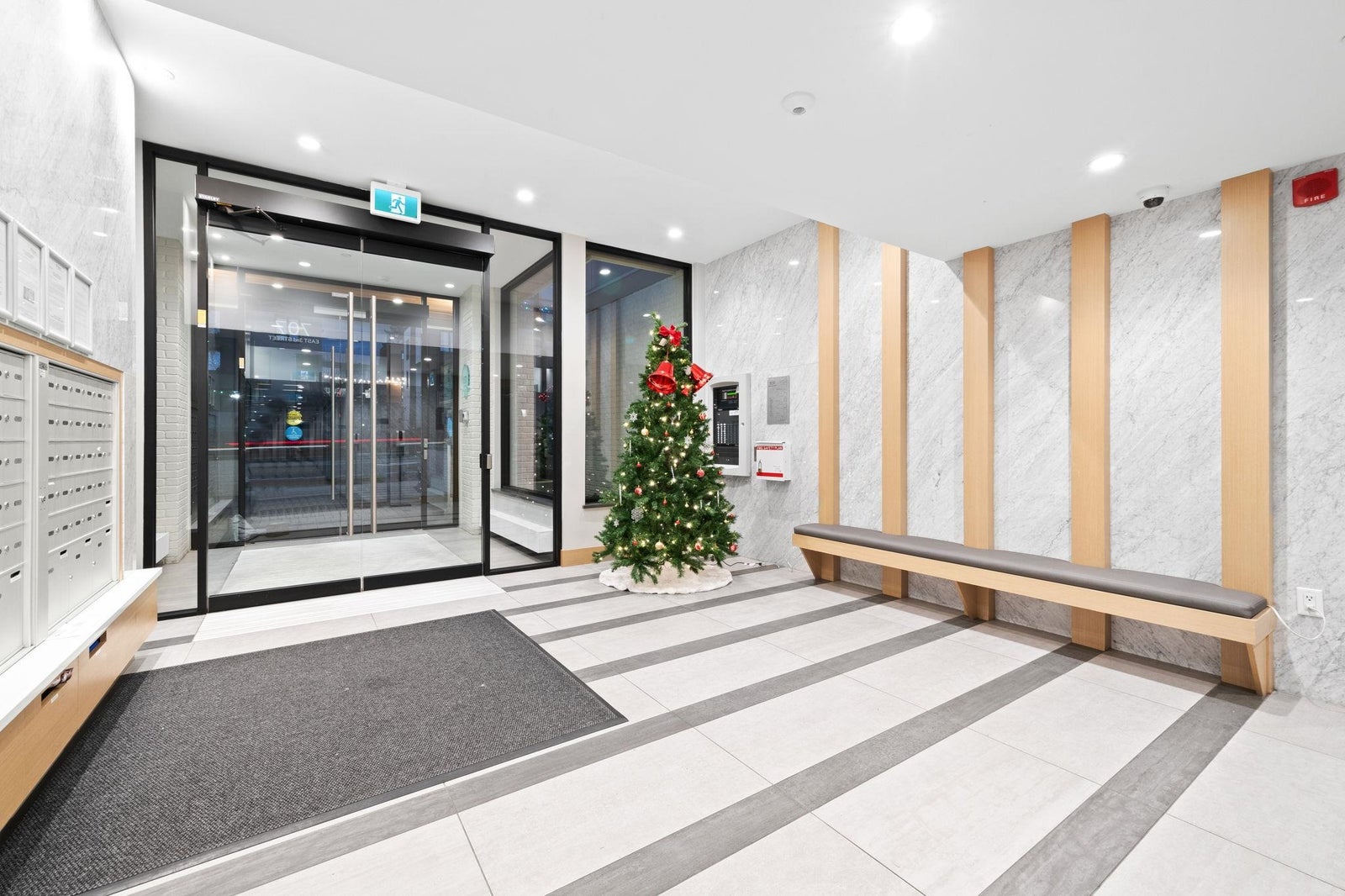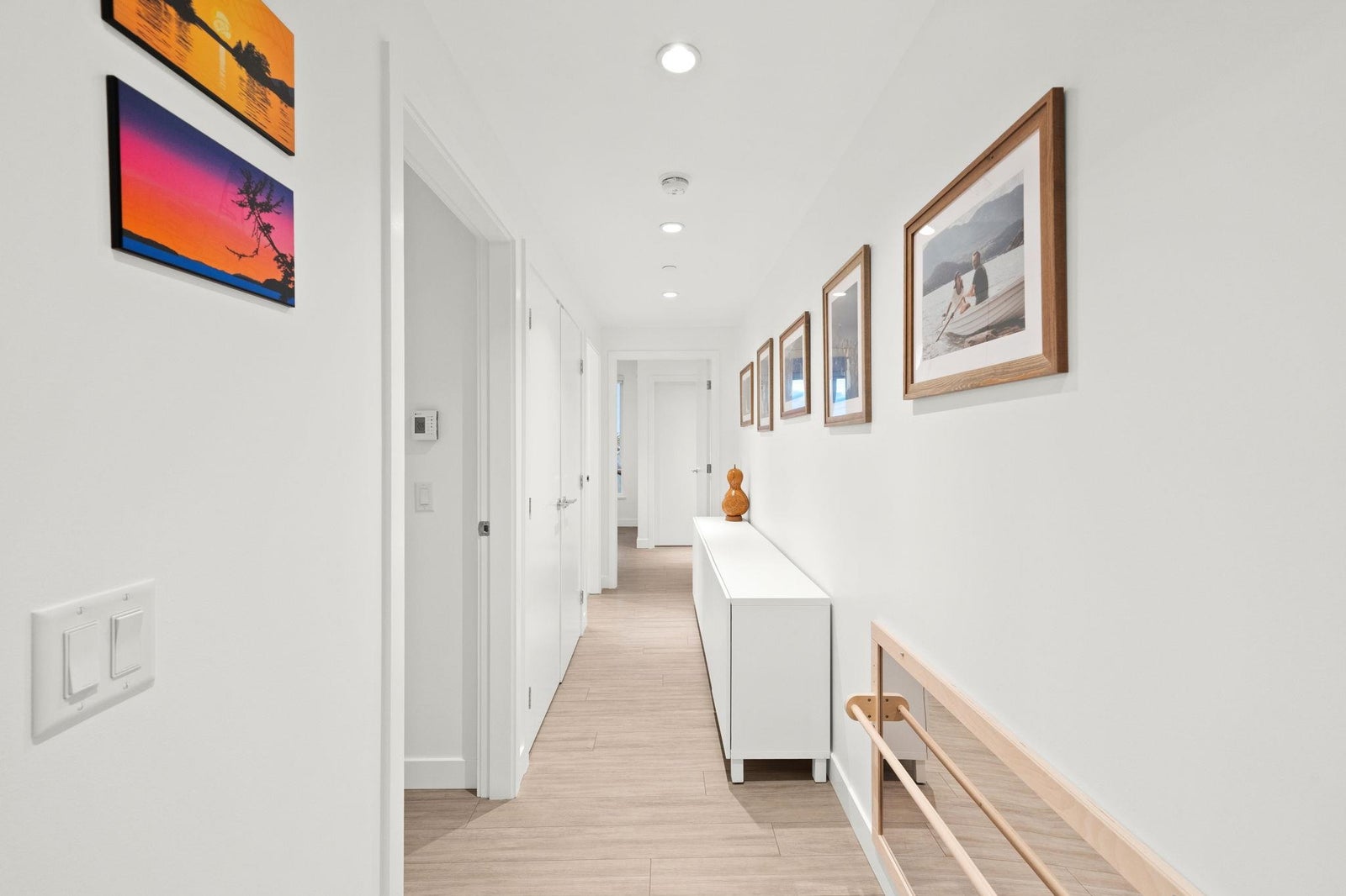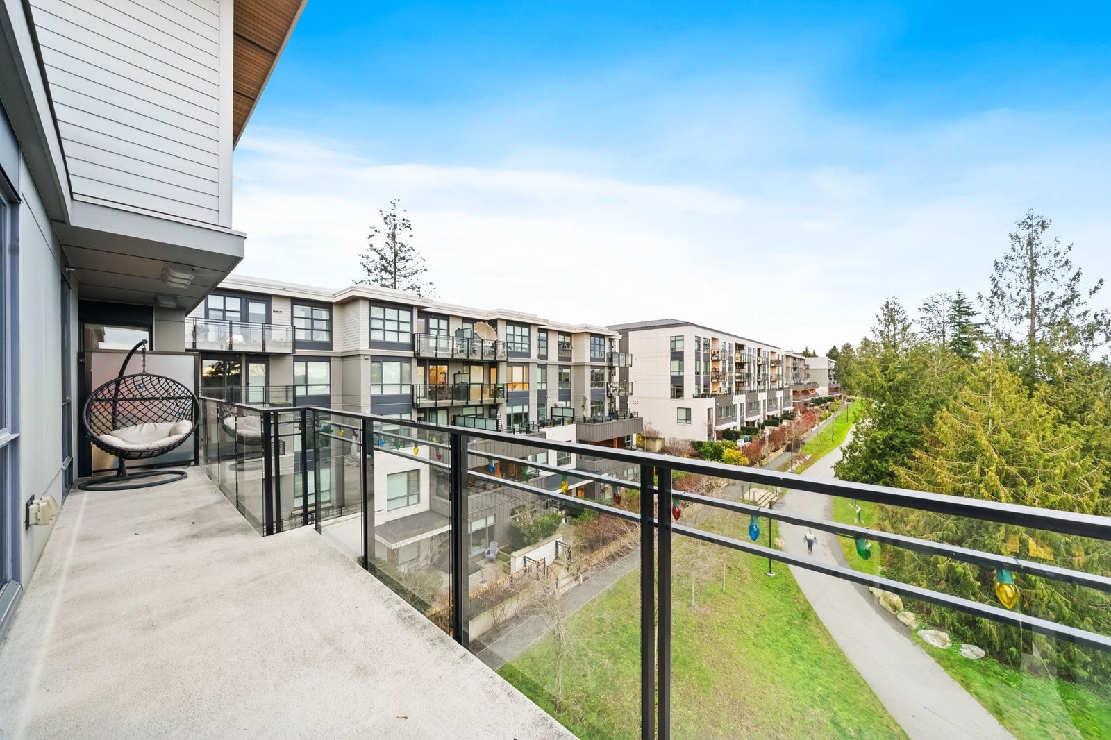 Rare & truly special. The only 3-bed + Flex CORNER condo with PANORAMIC ocean, city and park VIEWS on the market in Moodyville. This private, light-filled, south-facing home features floor-to-ceiling windows, open plan living that feels generous with no compromise on space or PRIVACY. A chefs kitchen w/gas cooktop, integrated appls, island & great hosting space. Enjoy the expansive balcony overlooking the Spirit Trail, city & ocean. Bonus -No one directly above! Trails, playgrounds & cafés at your doorstep; mins to Lower Lonsdale & Park & Tilford. Quality finishes, motorized blinds, hydronic cooling system, 2 parking, flex -insuite storage, pets ok, gym, guest suite, party room. Ideal for families, couples, downsizers seeking elevated condo living. Welcome home to Green On Queensbury.