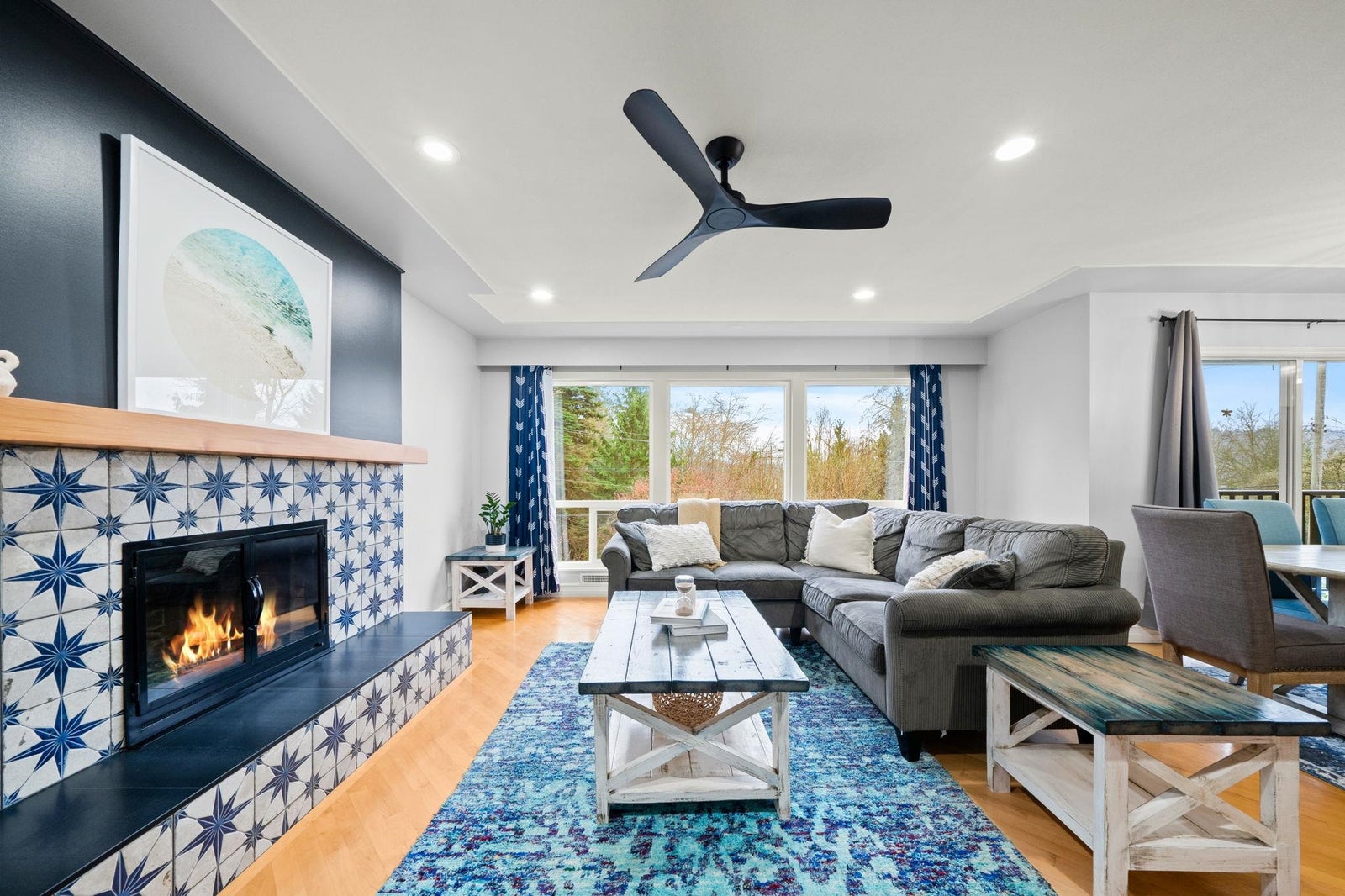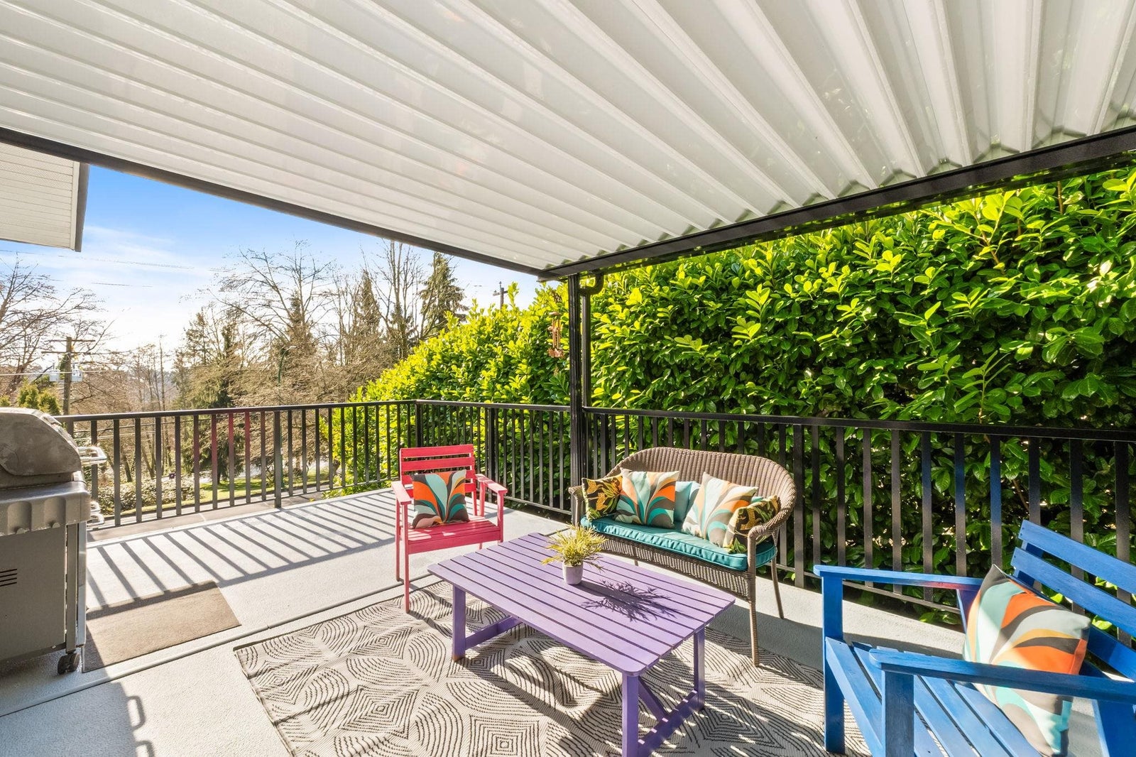 This meticulous family home is a no-brainer! For the price of a townhouse, move into a freshly updated 4 bdrm w/SUITE home with a funky vibe & south-facing sun all day — the perfect entry into the detached market. Tucked behind a mature hedge, it’s private & inviting. 3 bdrm/1.5 bath up, 1 bdrm + den suite down —ideal for family, in-laws/mortgage helper. Updates include heat pump, on-demand hot water, Updated kitchen w/quartz counters, new appliances, stylishly renovated baths — nothing to do but move in. Landscaped terraced yard leads to large flat grassy area and generous covered deck for all-season entertaining. Parking for 3 vehicles + room for boat/RV.Across the street, Cates Park - beach, boating & playground. Sherwood Park & Dollarton Village shops a short stroll. Priced to sell!